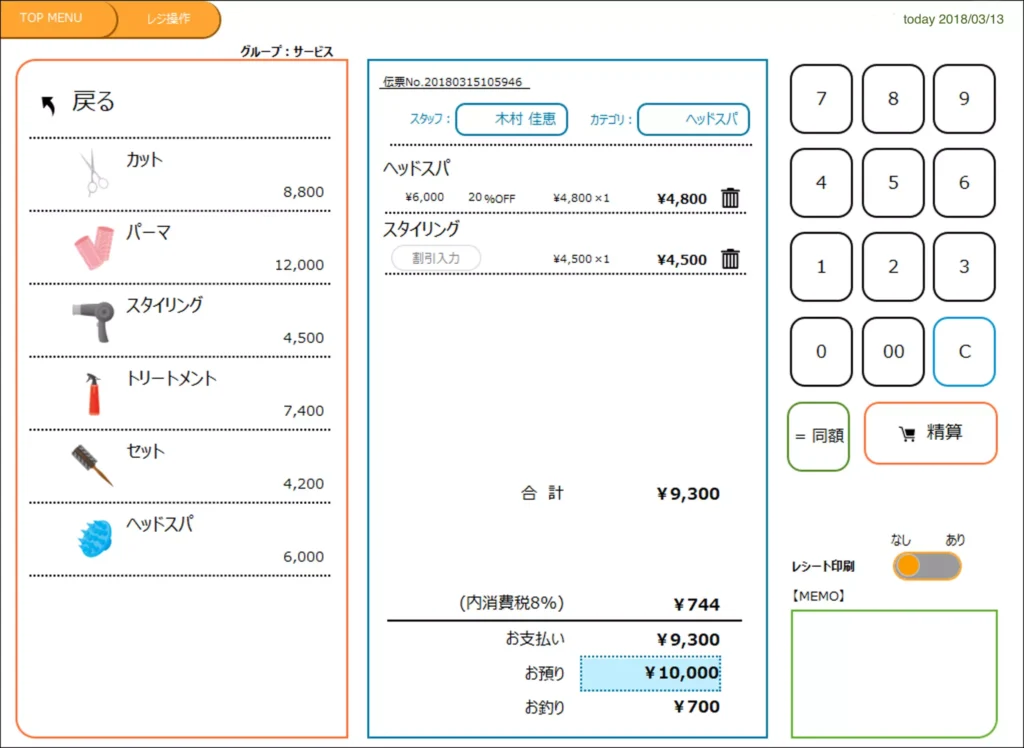 レジ画面は簡単、カスタマイズ可能!