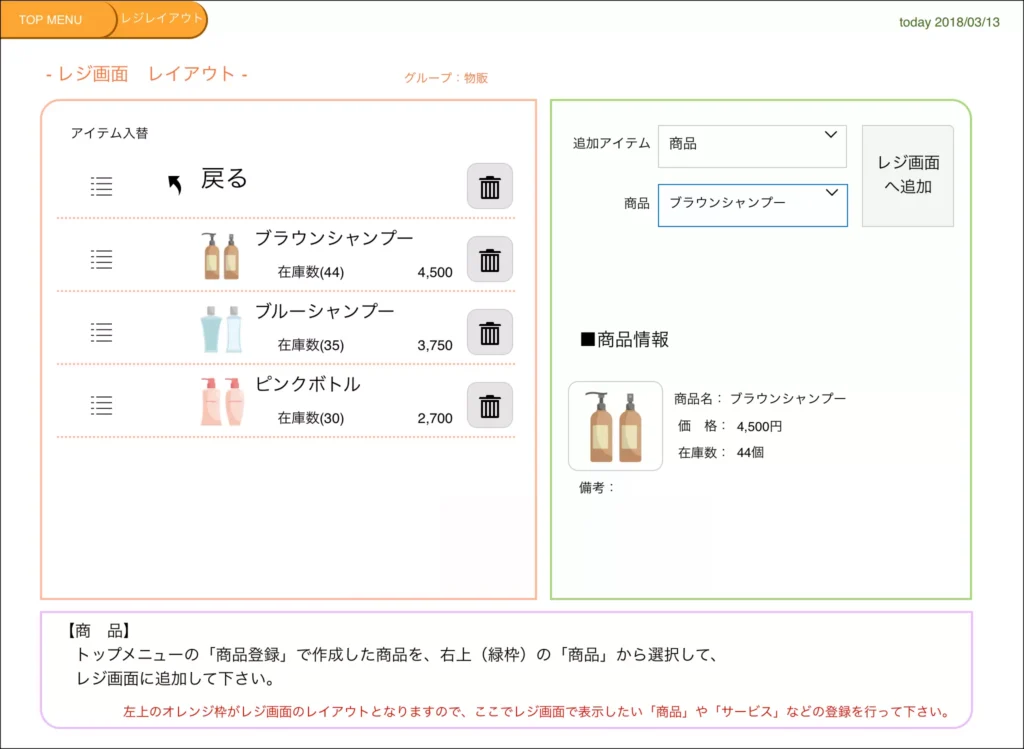 レジ画面レイアウト作成