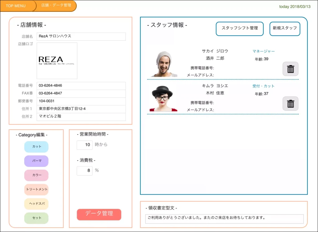 REZA for Salon Lite 基本機能