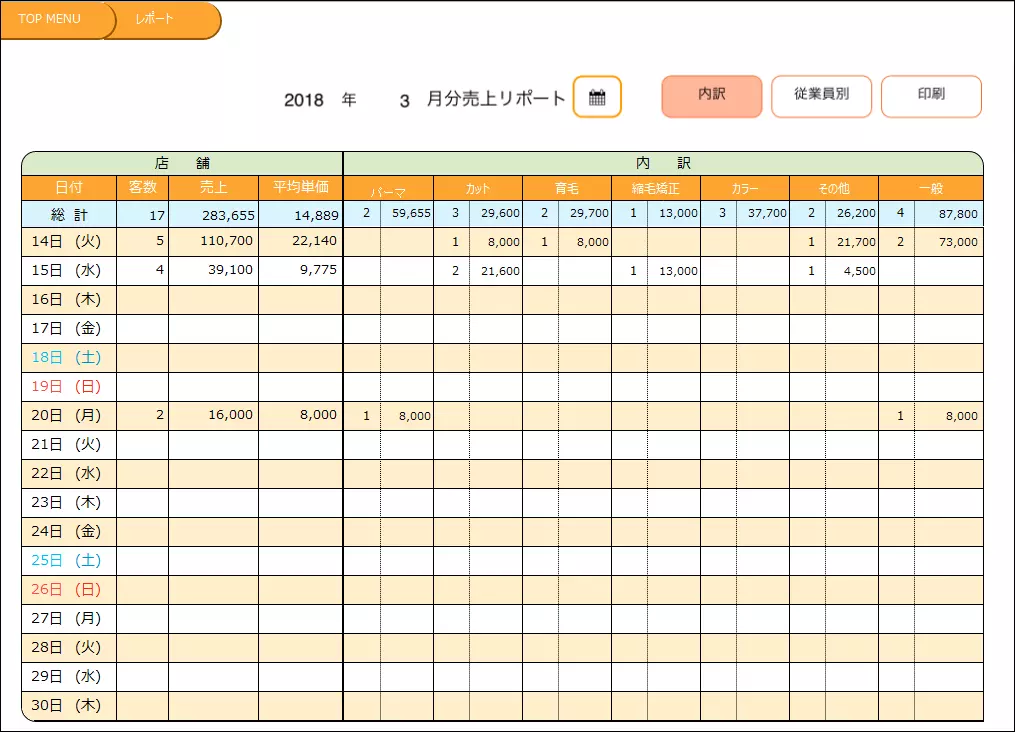 - 売上の月間レポート