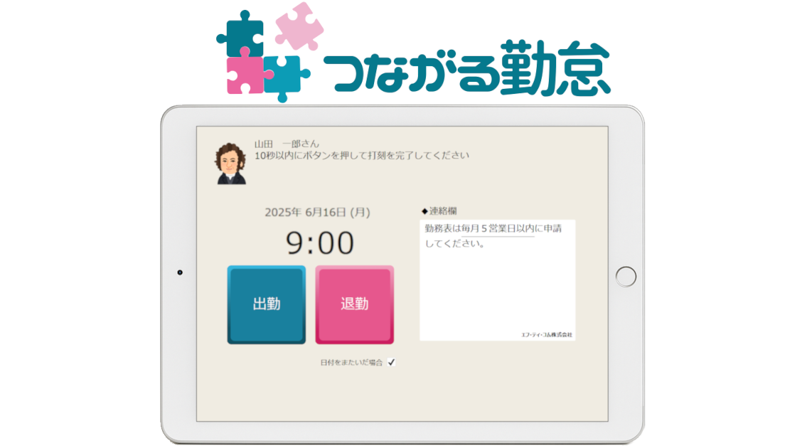 iPad利用で従来のタイムレコーダーより簡単にワンタッチで打刻できます。