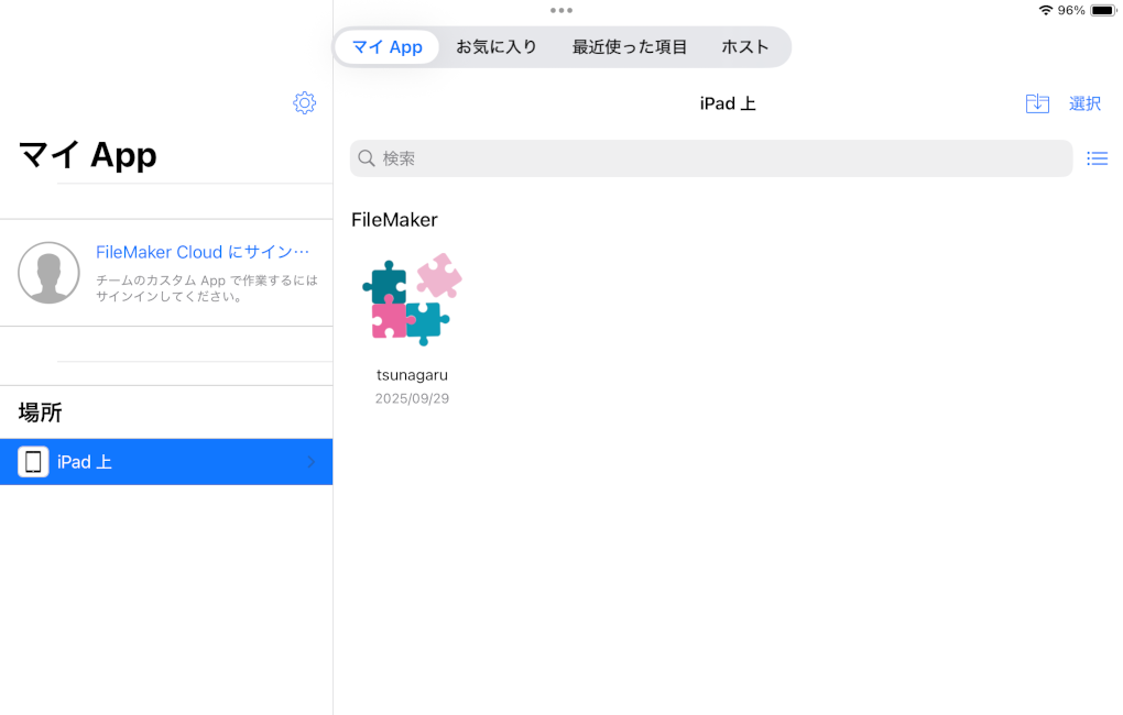 ※再度開く場合は「FileMaker Go」を起動すると、「マイApp」に表示されます。